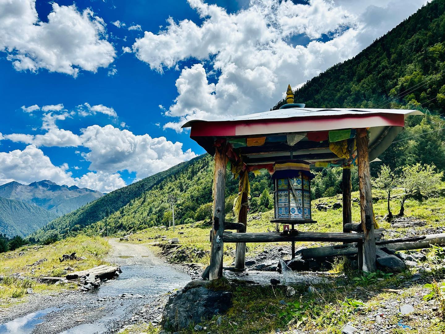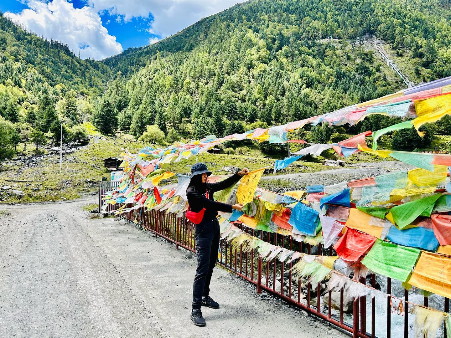 Had a spectacular drive through the Yi-Tibetan corridor, the road connecting Liangshan and the Tibetan autonomous prefecture Ganzi (甘孜). We split the drive across two days and found a scenic spot to sleep in the car :) After passing the town Jiulong halfway, suddenly the buildings were all Tibetan style. Prayer wheels and prayer flags started appearing everywhere as well.