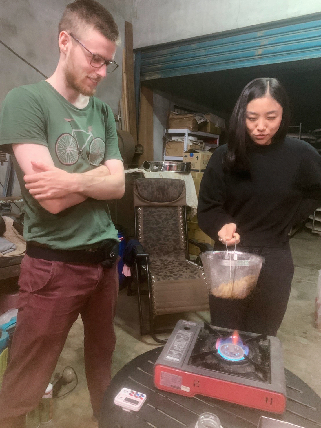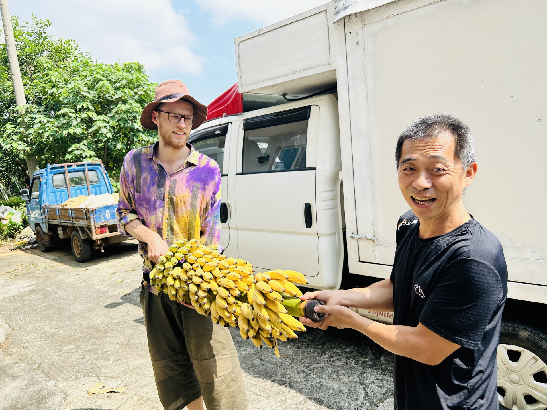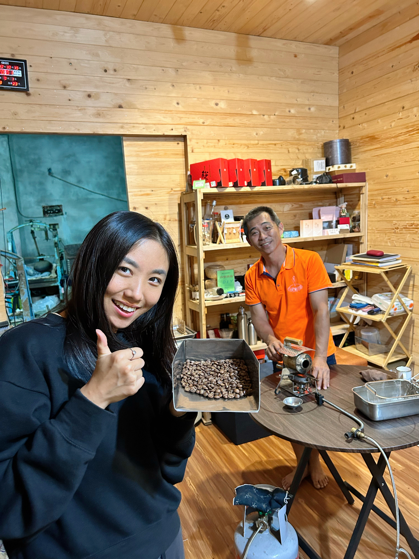 For coffee addicts like us, working and living on an organic coffee farm also felt like heaven. Not only did we taste the fresh, organic coffee but we could also learn about taking care of the coffee trees, harvest and the later processing to turn them into a final consumable product. Minghua and Wenju not only grow the beans, but also do all processing and roasting in-house, this is unlike the common model of separate growers and roasteries. They started the farm as a hobby more than 10 years ago and over the years became very experienced and knowledgable on the topic, regularly attending trainings on different aspects of the coffee/tea production. They are such welcoming and warm hosts, it was a pleasure to accompany them to an organic market, a tea exhibition and from time to time cook together, having barbecue and making pizza in the oven they built themselves (!). Their lifestyle and passion about organic farming and sustainability made a long-lasting impression on us, before leaving Taiwan we plan to see them one more time and keep in touch beyond this visit.