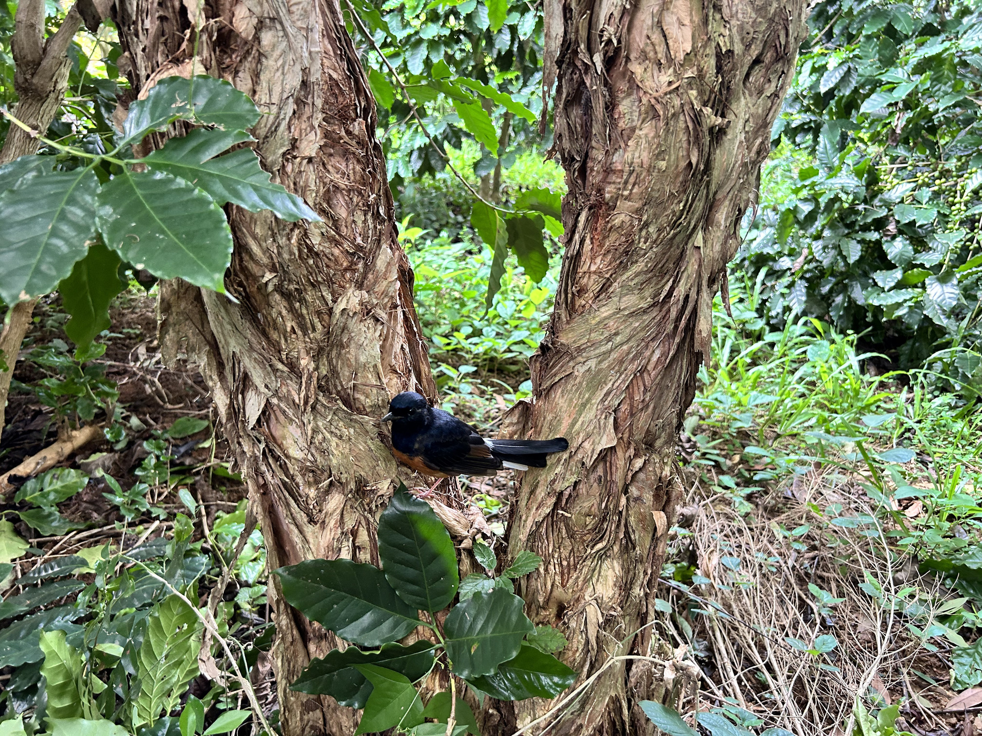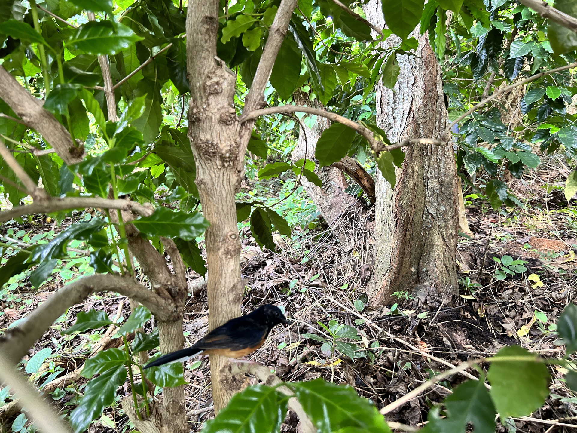 There were some special animals on the farm that we interacted with, for example a little bird that has a long tail and mouth, with a small part of white feathers on his back. We learnt that he is a White-rumped Shama (长尾四喜) and very good with mimicking other birds’s chirping. He would literally come near us every day when we were picking beans, following us around with a safe distance. We could tell he was very curious about us and there was some sort of trust that he knew we would not hurt him, but out of natural instinct he kept distance. He would fly around us, jumping from one branch to another so it was easy to spot him. He is happy there and belongs there as there is everything he needs: clean air and water and enough worms to eat. Occasionally some strangers come to work in the farm and amuse him too.