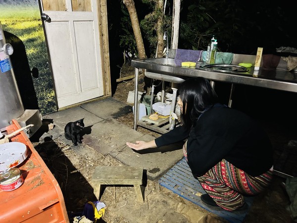 (Shiwen) One of the most sweet memories there was when I took care of 2 little black cats. They are very alert and cautious, which is good to survive on the streets. But I wished to “tame” them so they could stay at the farm as their new home. I heard from A Gong that the winter can be quite cold (around 7 degrees Celsius) and some cats won’t survive and freeze to death. It’s so upsetting to hear and I worry so much that this would happen to them as well, so I tried my best to make the backyard comfortable and used a few “tricks”: I made little nests with old clothes for them in some hidden areas that they liked to chill, I kept feeding them with dry food and even can food that they are crazy about, I played with them with a small tree branch and at first they didn’t know what to make of it, but quickly they understood it’s entertainment and loved playing with me. Slowly but surely they were trusting me more and more. Now that I’m not on the farm anymore I really hope they still use the farm as a shelter especially when it’s cold or raining and they are hungry. I can only hope so, although I heard the cats who died would rather die in the cold nature than taking help from humans.