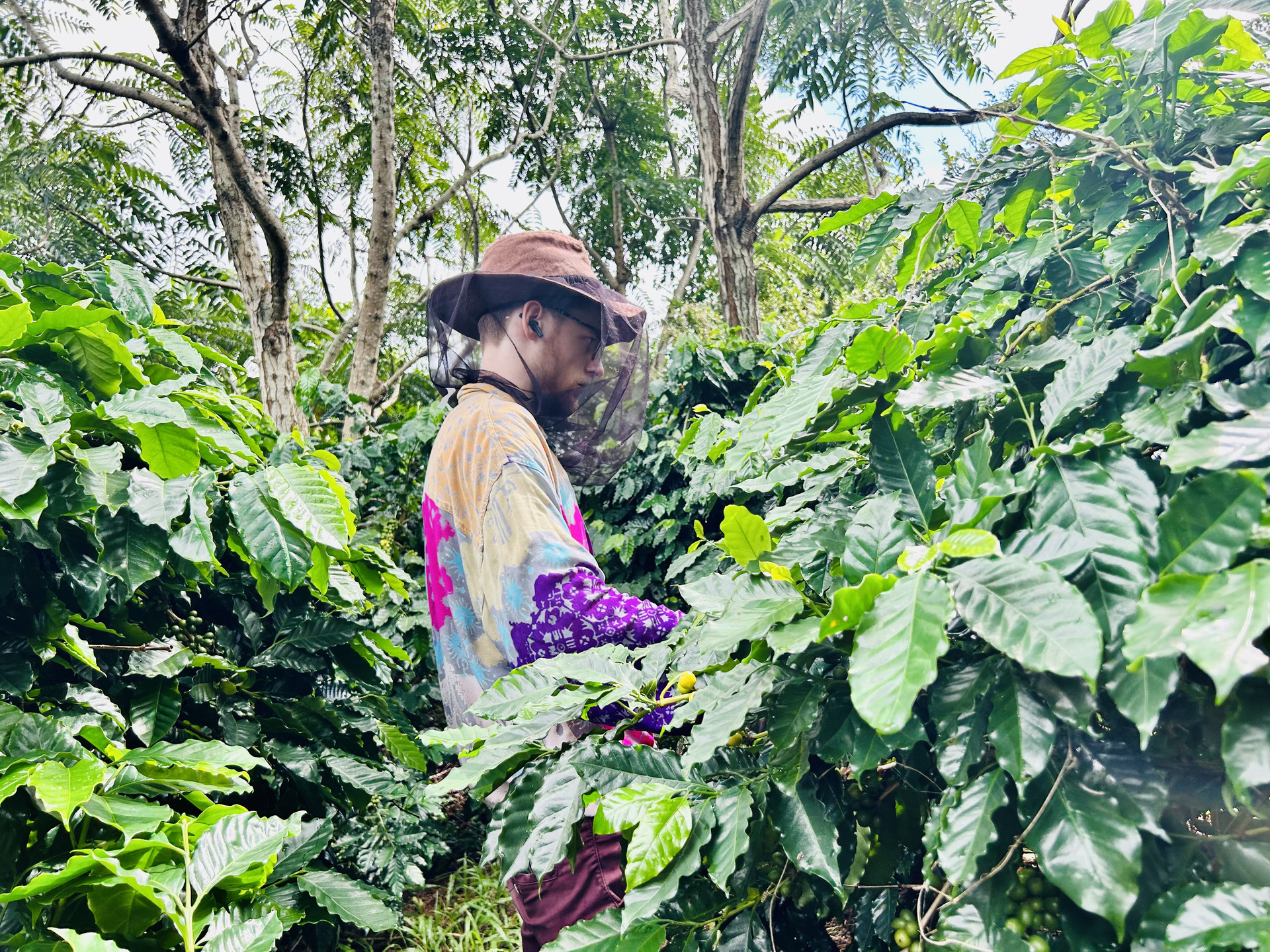 The farm work was simple but not always easy: we pick both the mature beans and the bad beans that have worms or disease from the coffee trees. We also had scissors to prune the trees where branches were too long or the trees were growing too dense to pass. Sounds pretty easy but telling which shade of yellow means a bean is mature enough was quite challenging and requires some experience, so we shifted more and more towards focusing on just removing the bad beans. Pruning the trees we were maybe a bit overcautious in fear of making mistakes. Picking beans is quite the repetitive task, which can feel very meditative but also a bit boring, so we mostly listened to podcasts during the work. It was great to have a lot of time to explore topics dear to us like consciousness, sustainability and software by listening, much of which were so fitting to the current setting (at least the things Shiwen listened to, what kind of nerd keeps listening to programming podcasts on a farm?). The biggest challenge were the mosquitos that were insanely craving for our sweet foreigner blood. Although we were dressed up fully covered with layers and “showered” with mosquito repellent, they sometimes still managed to get through and bite us… how? Sometimes as we got bitten more often the urge to scratch got too big to resist and we’d scratch like mad for some short relief and bigger regret. Unlike the strong midday sun and high humidity we could not get used to the harassment by the little devils.