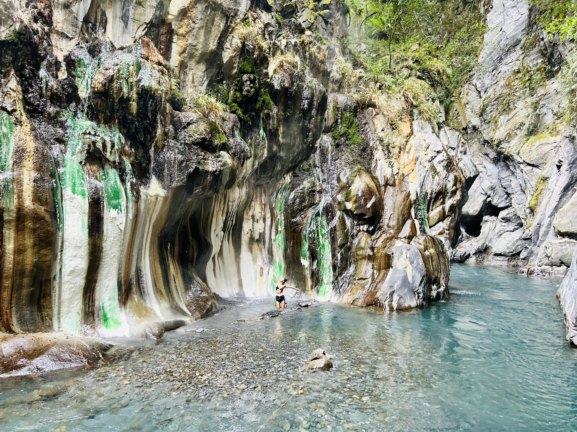 Finally, our last 3 nights in Taiwan were spent in the biggest city on the east coast, Hualian. Arguably the most famous attraction of Taiwan, the Taroko gorge, is just half an hour away from Hualian and marks the beginning of a path that crosses over the central mountains towards the west coast. One day we rented a scooter to go up and do the point-to-point trail Lüshui to Wenshan, which was an absolutely stunning hike of 3 hours. The scenery is ever-changing, at first a very steep ascent culminates in a peak that oversees the vast valley with towering mountains on all sides, the later parts dip into green forest with a touch of jungle feelings. At the end one crosses a bridge and reaches the beginning of a short path down to the water where a small hot spring waits besides the river. Both of us agreed that the trail is the most beautiful we have seen this time in Taiwan. Overall we have fallen in love with Taiwan’s east coast, the natural scenery is just such a wonderful mix of sea, mountains and valleys, the towns are cute and slow-paced, the people are incredibly friendly and talkative. We will be back for sure.