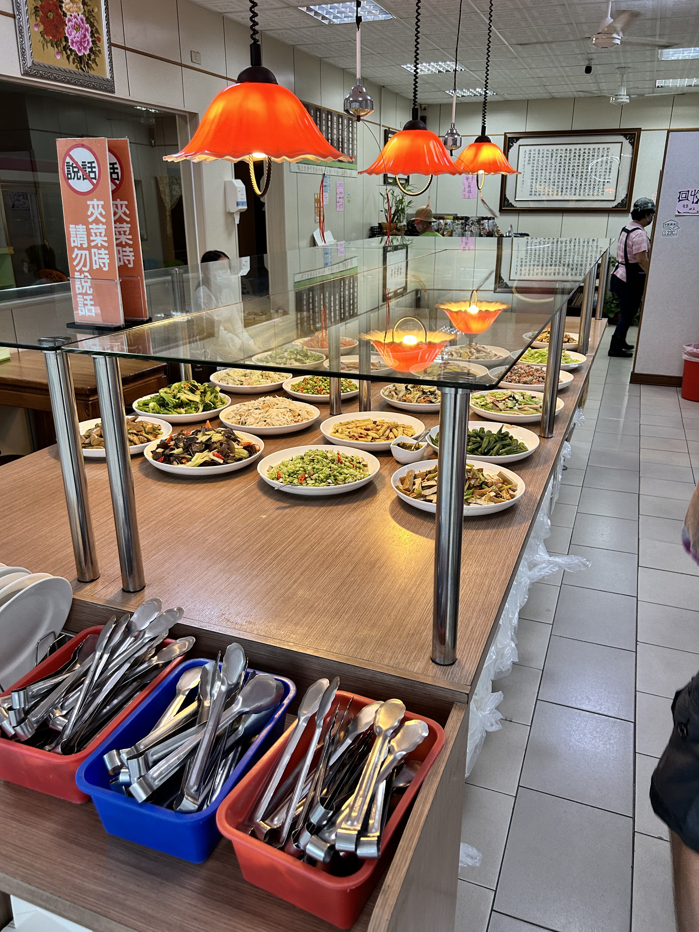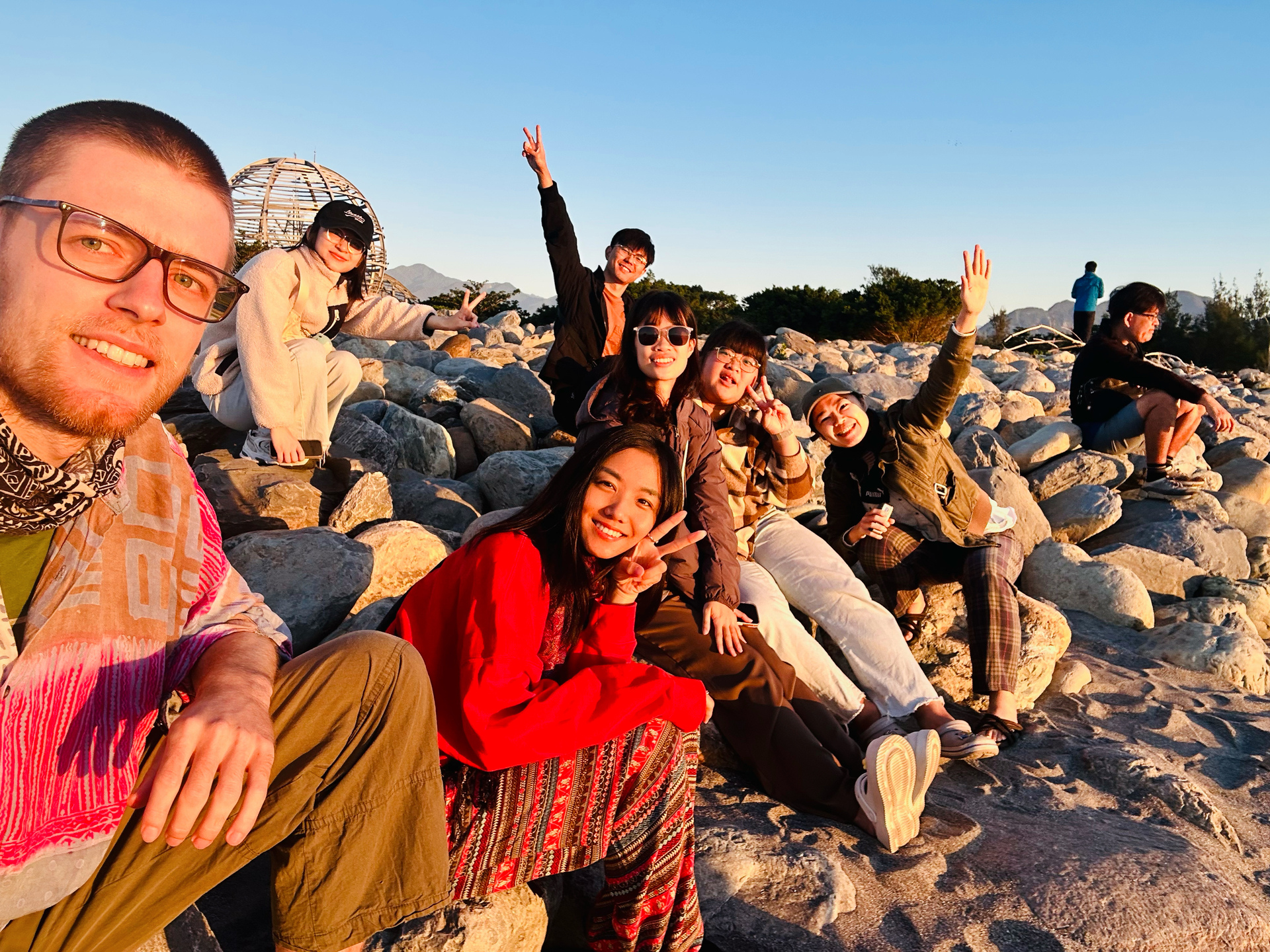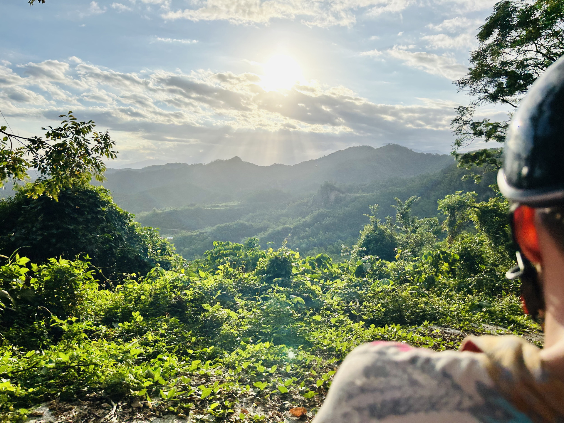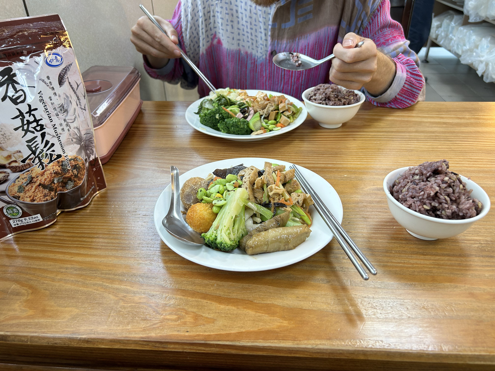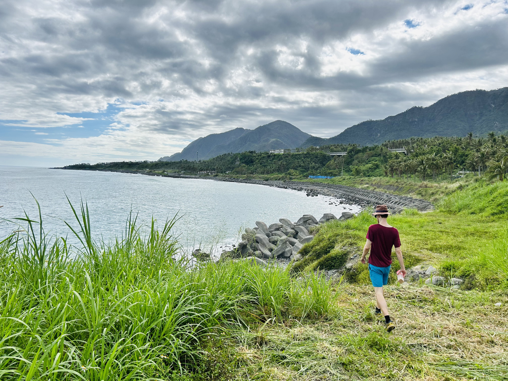 A few times we explored the area up north by scooter, one day doing an excellent hike up Dulan mountain that offered views both towards the sea and the inland valley through the jungle canopy. Some days most of our time was spent in the hotel’s common area reading, drawing or chatting with the owner and helpers. One morning we all went to see the sunrise at the coast and had delicious water-fried dumplings (a very typical breakfast dish) afterwards. Another highlight were the many great vegetarian restaurants we found, 4 of them we visited more than once, tasting many plant-based dishes new to us. There are the variations on Chinese/Taiwanese classics like Wonton dumplings, minced-meat rice, but with tofu/mushroom-based meat replacements, there are the buffet restaurants with all kinds of vegetable dishes and of course there’s also good old fried rice with mushrooms. We tasted many vegetables new to us, unfortunately we did not do a good job at recording their names … Shiwen became a regular at her favorite milktea shop close to the hotel and Jannes had to get his daily fruit juice at one of the many places throughout town. We even found a spacious gym that made an exception to let us pay per visit. Overall we quickly felt pretty settled in Taitung, which made it hard to move on when we did eventually.