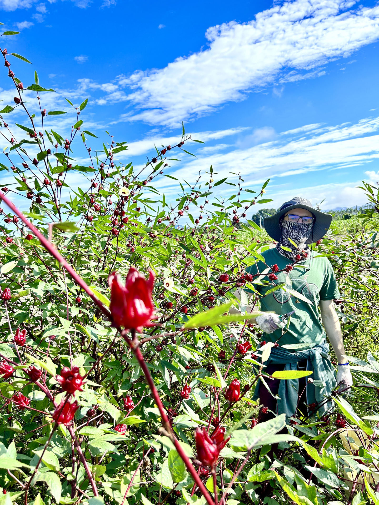 One of our most unforgettable experiences in Taiwan was working in Uncle Tien’s organic farm, which is located centrally on the east coast of Taiwan close to a small town called Guangfu. Having arranged our one week stay there already one month in advance, we had organized our itinerary to slowly make our way up the east coast and arrive in Guangfu in the middle of November. Uncle Tien has two plots of land, one banana and fruit tree plantation, one where mainly soybeans, other vegetables and roselle trees (a type of hibiscus) are planted. He explained his choice of plants is based on what he likes to eat personally and what turns out to grow well, the current composition of crops is the result of a trial and error process throughout the years. When we arrived in mid November, the soybeans had already been harvested weeks earlier and much of the ground on that plot of land was empty, besides the parts where roselle trees and various vegetables such as corn were planted. To reduce the impact of insects Uncle Tien only grows soybeans one half of the year, the other half he cultivates a mix of rapeseed and radish on the same land.