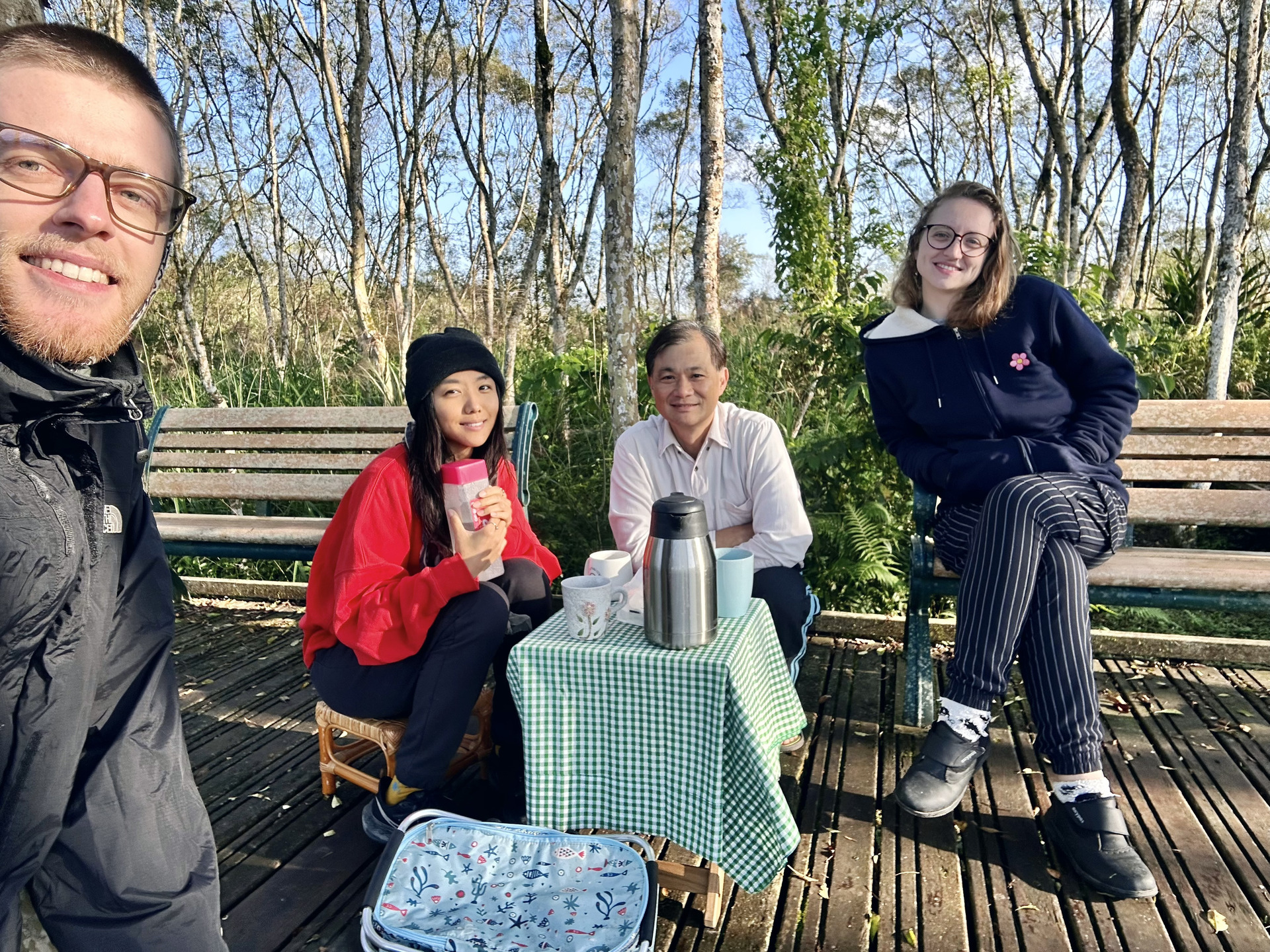 Besides the regular routine, Uncle Tien also took us sightseeing around the area for half a day, starting with an early sunrise breakfast on the edge of a forest looking over the fields with mountain ranges on each side. It was a wonderful experience, the beautiful scenery combined with gentle sunshine and a meal. That day we also visited an indigenous settlement, a prison with its own farm and former sugarcane fields now turned into big forest area with biking paths. The prison looked like a five star hotel with its own garden and farm fields, we were even secretly planning to commit a small crime so that we could live there shortly for free! One day after dinner we went to a nearby outdoor hot spring. We were so excited and chatting non-stop in the warm spring water till the guard chased us away to close the place. On our last night when we were having dinner we heard the neighbor’s karaoke session getting started and Cyndel asked whether we should join them. After dinner Uncle Tien went to the neighbors and got us invited to their karaoke night! It was fun, Cyndel and Jannes were singing in Chinese, which certainly astonished (in a good way) all the audience! It is pity that we couldn’t extend our stay it any longer as there were already other volunteers scheduled to arrive right after us. The 7 days we stayed felt like a holiday weekend, full of diverse activities and many conversations. We are grateful for having such a precious and satisfying experience during our trip, and trust that life will bring us back to this lovely farm again.